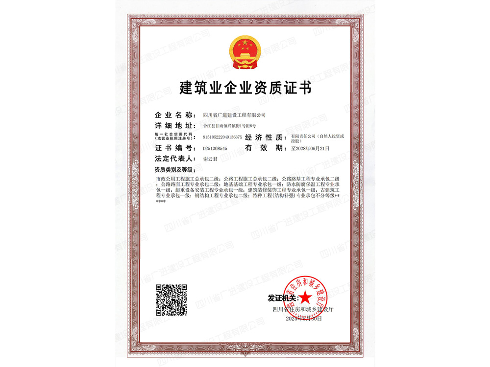 四川省廣進建設工程有限公司前身為合江縣廣進住房建設有限公司,于2008年12月經合江縣工商局批準更名成立。最初公司名稱為合江縣住房建設工程公司,是為適應住房制度改革的需要,服務于房改工作,經縣政府批準于1993年5月成立。公司建立以來在縣房改辦和縣建行的直接領導下,按照縣府要求做了大量工作,促進了我縣房改任務的完成。之后,于一九九八年根據相關文件精神公司與縣建行和縣房改辦脫勾實行獨立經營,并對原集體所有制形式改制為股份合作制。公司成立以來規模逐年擴大,綜合能力不斷提高。